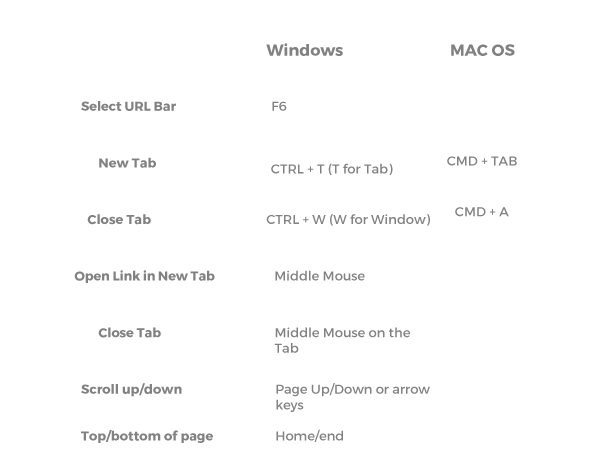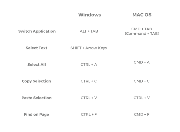 If you find yourself using your mouse to switch between two programs, the ALT+TAB shortcut will save you lots of time. Instead of taking your hand off the keyboard, grabbing the mouse, finding the window and clicking, then resetting your hand, using ALT+TAB you can keep your hand on the keyboard, which’ll speed you up. Select, Copy, and Paste are huge speed improvements if you don’t already use them.