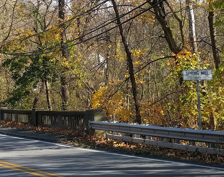 Careful crossing the mighty Spring Mill River.