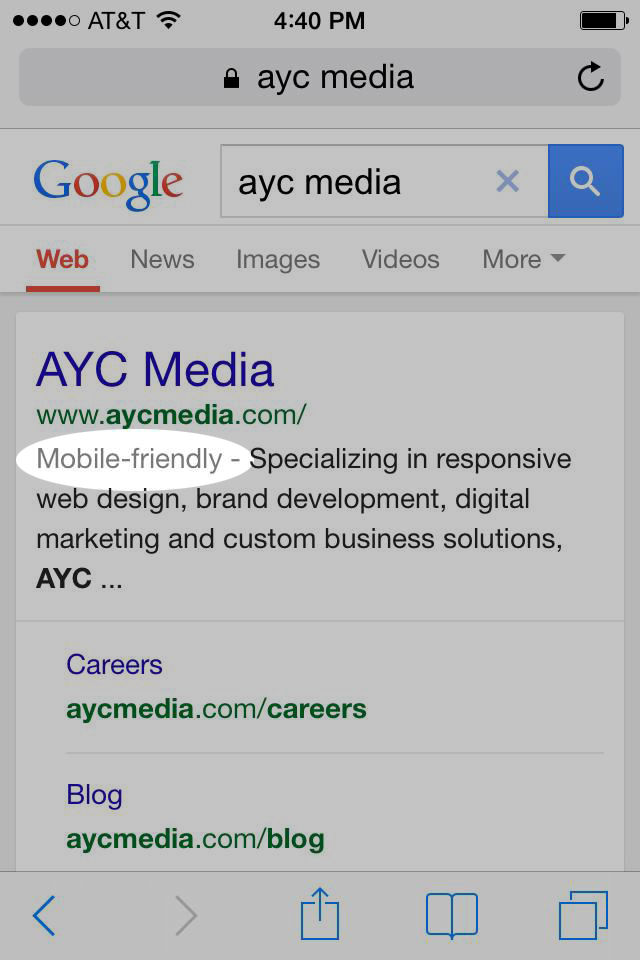 Finally, all of our hard work spent convincing clients to opt for a responsive website has been justified. Last month, Google announced that it will be rewarding sites that render properly on a mobile device with a ”mobile-friendly” label listed directly in the search results.