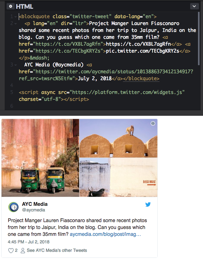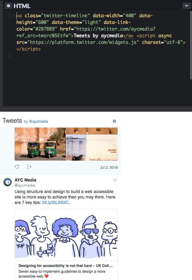 2. Go to the intended plugin code generator, and follow the directions (usually found in developer page). For example, here is Twitter's developer page on embedded timelines.