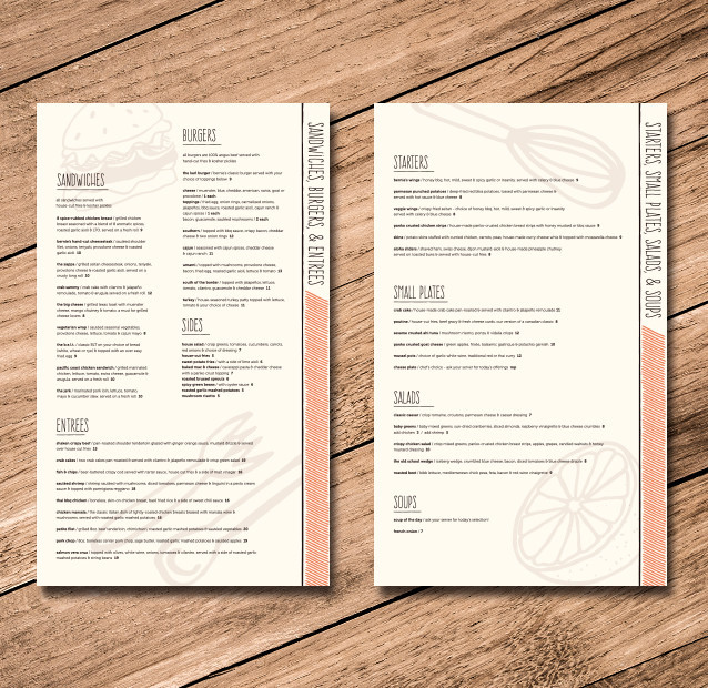 We were especially enthused to help Bernie’s develop their interior, with a custom wall design. This distinguishable feature helped tie in the family touch on a grand scale. The designs took on a life of their own and were incorporated in both promotional material and signage. The logo worked perfectly with the decor and together, with the other creative elements created an enhanced design aesthetic.