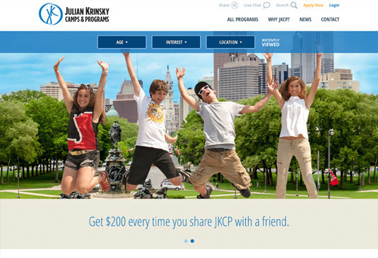 JKCP indicated that their previous websites presented problems with driving users to sign up, so AYC Media strategized an easy-to-navigate process that starts with a landing page asking users to enter their age. Using HTML 5 video, AYC Media’s development team included a video background that shows an aerial view of local campuses and Philadelphia landmarks. This exciting call-to-action immediately drives users through the sign-up process.