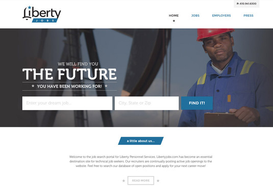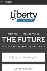 Our design team first tackled redesigning Liberty Jobs' logo, evoking the liberty bell with some crafty design work on the "L" of Liberty Jobs. To accommodate users who may be searching on a mobile tablet or smartphone, Liberty Jobs wisely opted for a responsive website.