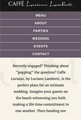 The custom CMS was designed so that new Luciano locations can be easily added and features can be hidden or included based on each restaurant’s offerings, such as weddings. The design can also be simply molded to fit the personality and ambiance of any new location.