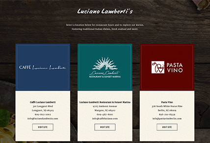 For Luciano Lamberti’s restaurants, a group of Italian food eateries, our team devised the best way to encompass all of their experiences under one umbrella and easily manage those sites. The landing page and each site have a consistent look while allowing for the character of each restaurant come through in color and photography.
