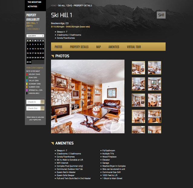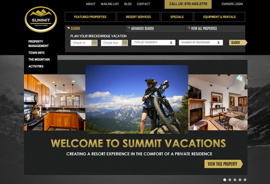 The Summit Vacations redesign focused on giving users an easier method for searching rentals. A large, rotating feature area on the homepage shows off the pristine beauty of the Breckenridge slopes, while a scrolling list of select properties below the fold gives visitors a quick glance into some of the best rental properties in Colorado.